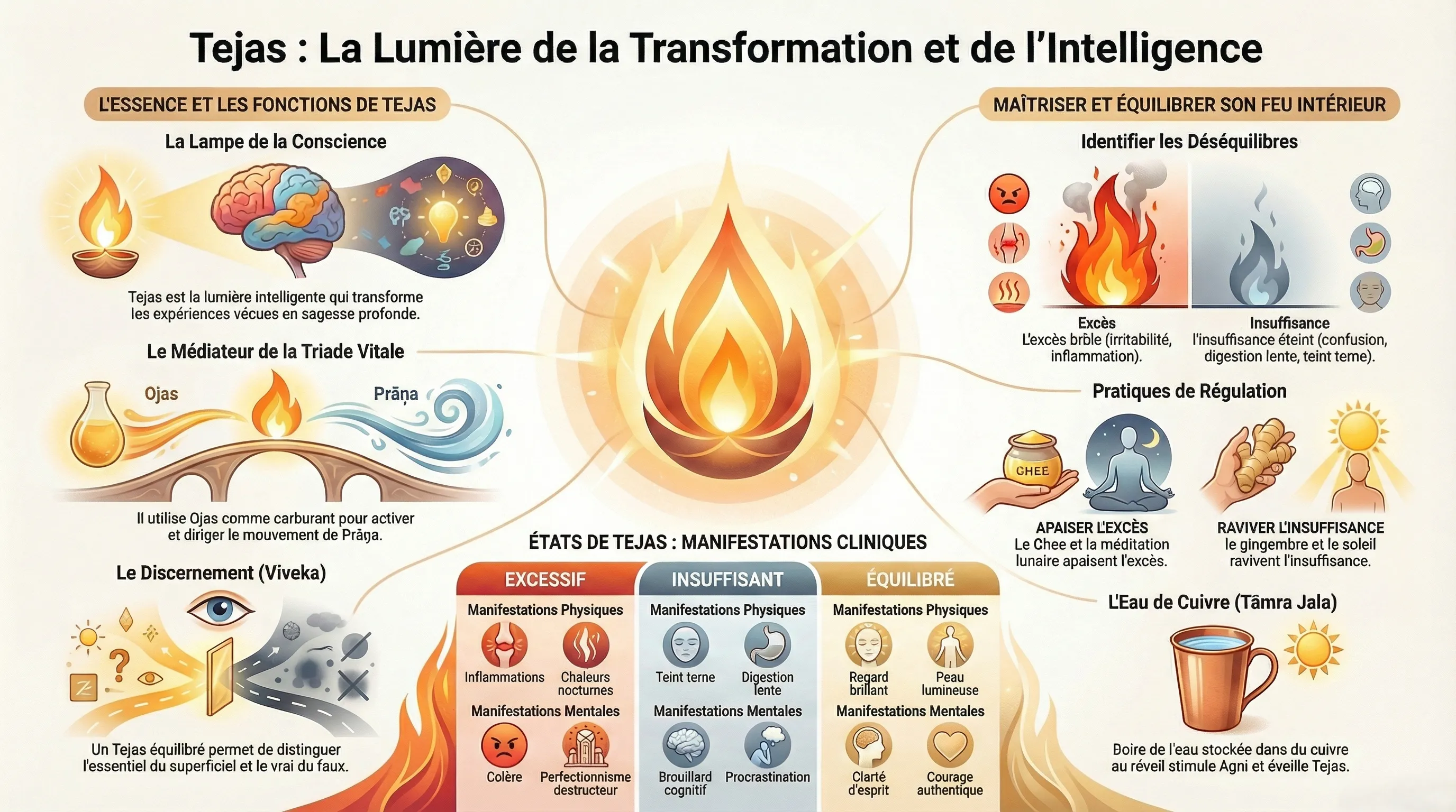 Comprendre Tejas, c'est comprendre comment la lumière de la conscience se manifeste dans la matière — et comment cultiver cette lumière pour vivre avec clarté, courage et rayonnement.
